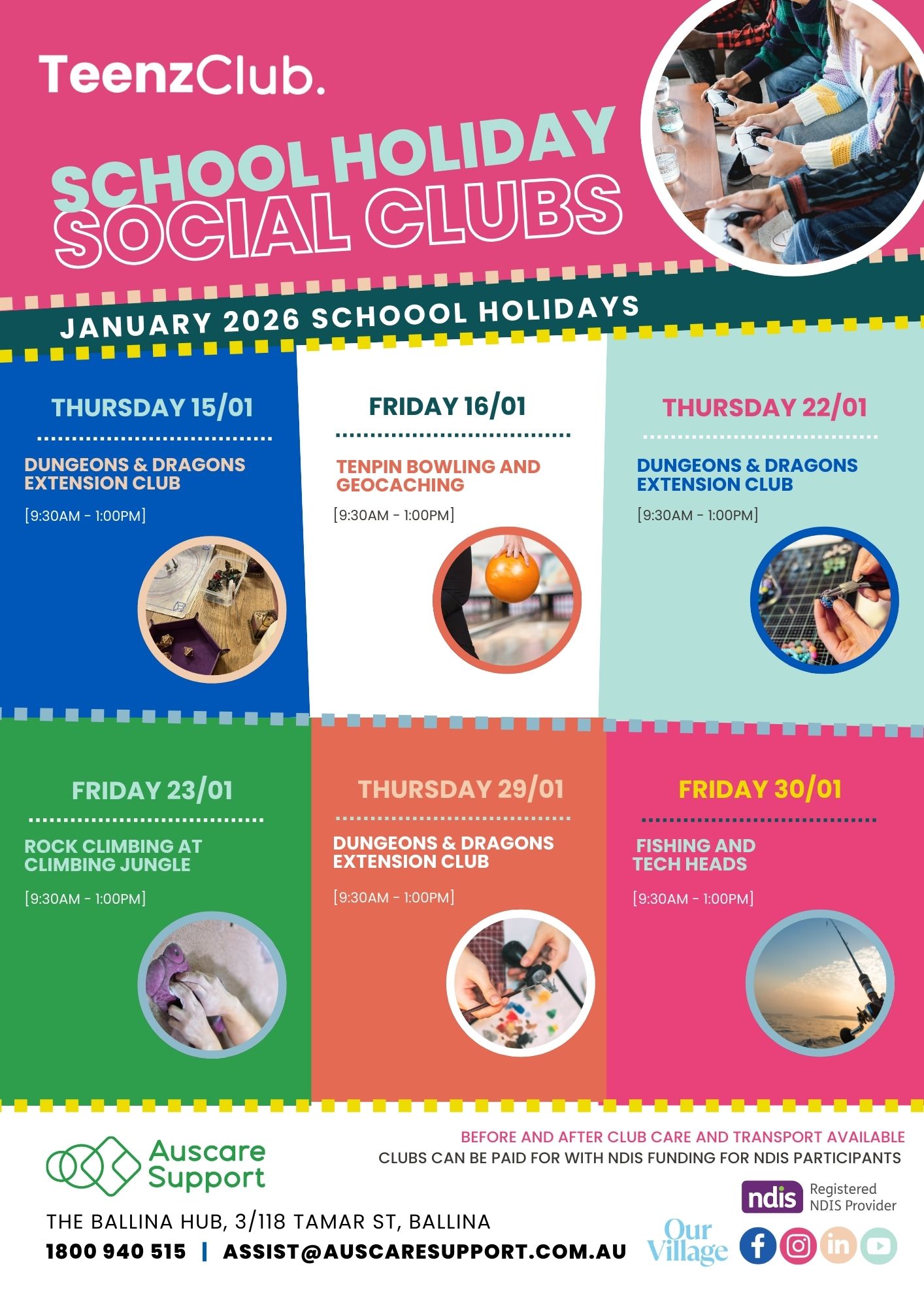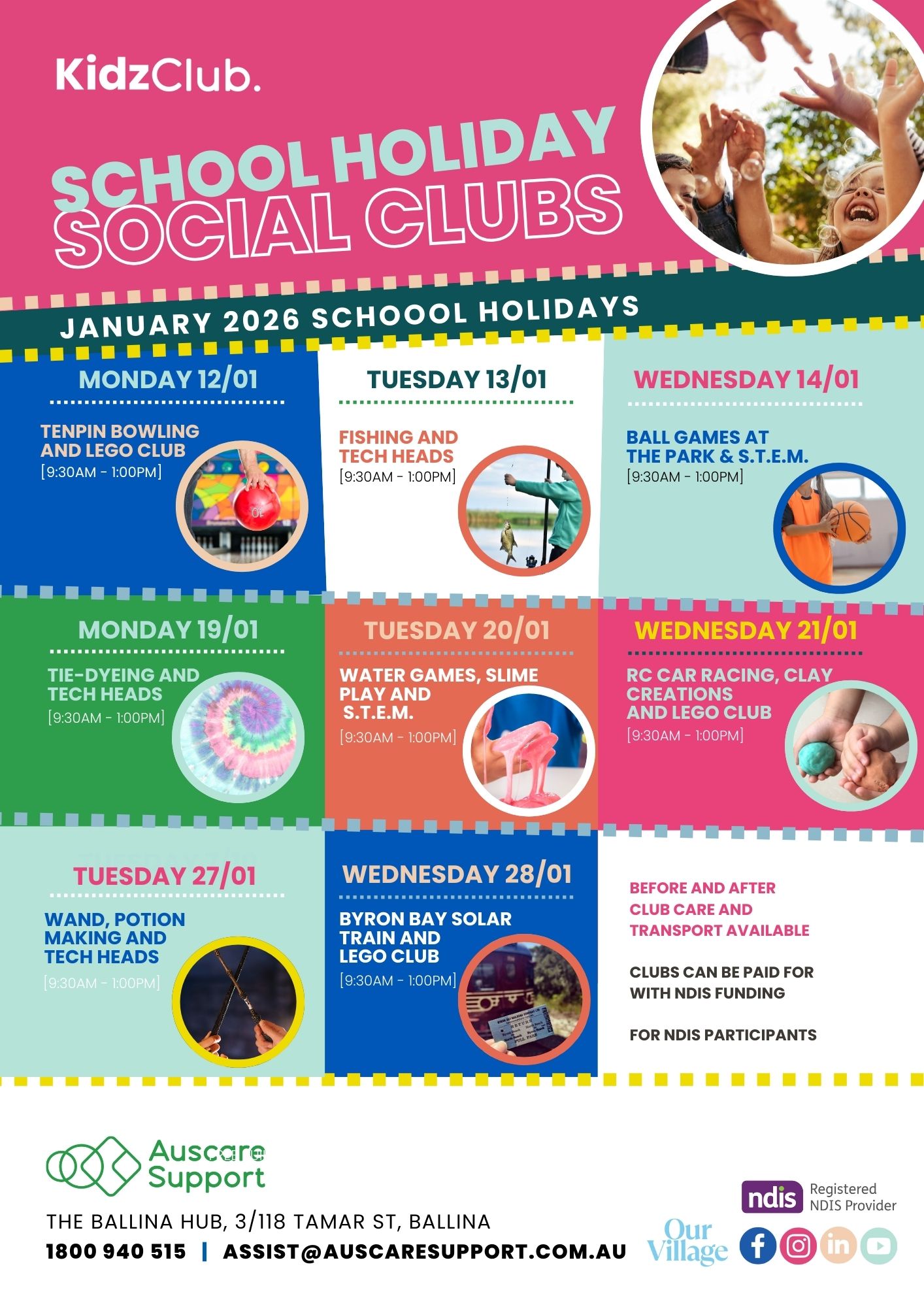 Our Social Clubs typically run for ages 7 years to adults, with programs for kids grouped by age and developmental stage to ensure appropriate peer connections.